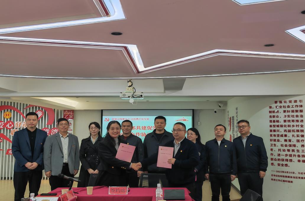 经济与贸易学院党委书记蒋琼与经开区藏龙社区党委书记郝学文签订了“支部共建促发展”校地合作协议书,并就校地合作和党建共建开展深入交流。