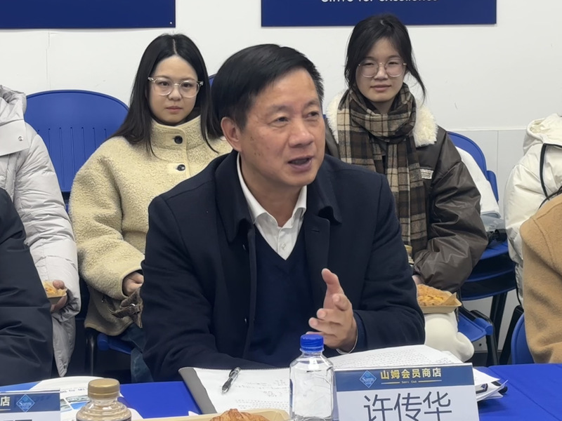校党委常委许传华介绍了学校和学院发展概况。他概述了学校源于百年商科文脉的办学历史与应用型大学的鲜明定位,阐述了三个核心展望:一是共建育人平台,将山姆商店打造为直面产业前沿的“实战课堂”,实现教育链与岗位链的联动;二是共享优势资源,推动学校科研智力与企业实战场景结合,邀请企业专家深度参与人才培养过程;三是共担社会责任,通过培养扎根当地的优秀人才,真正实现校企共生、区域共兴、发展共赢