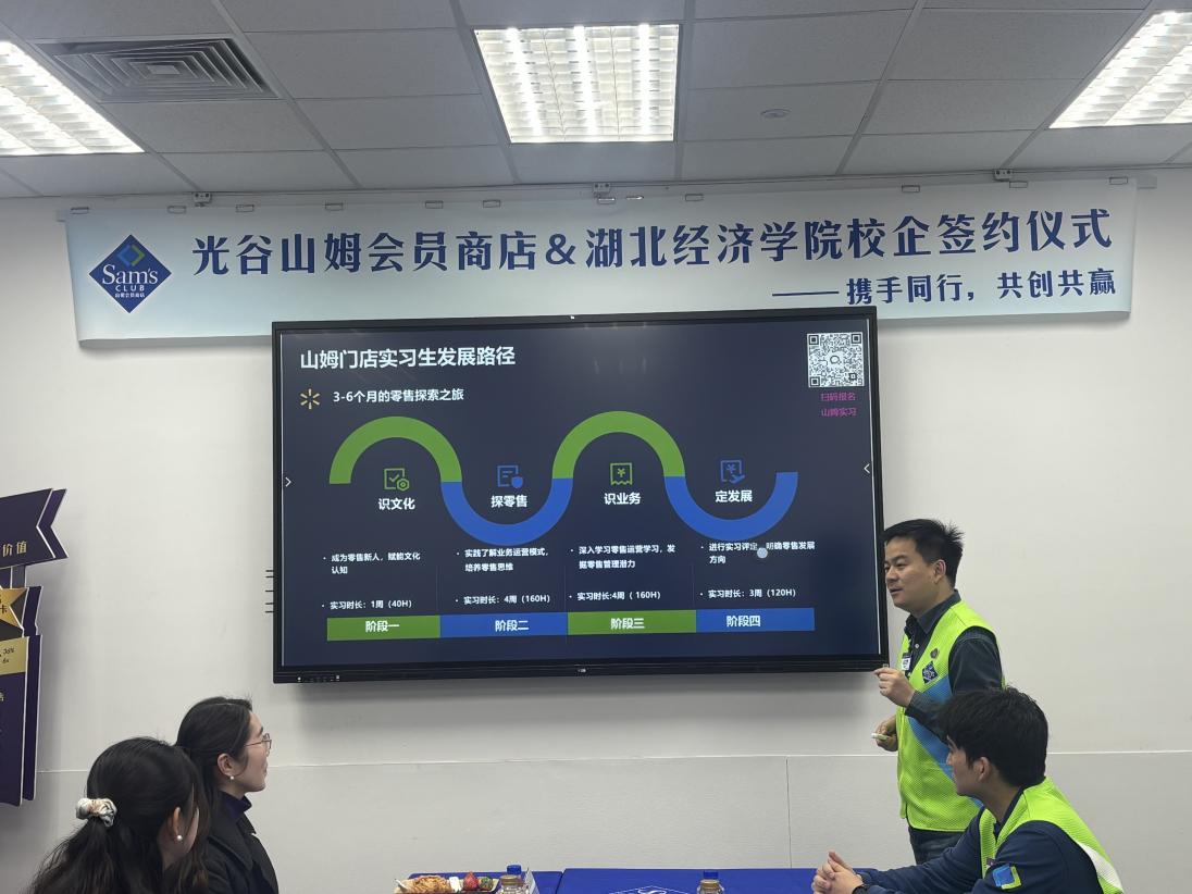 深入了解行业发展趋势和企业人才需求,推动学院专业人才培养与产业需求紧密结合12月24日上午,党委常委许传华带队前往沃尔玛(湖北)商业零售有限公司光谷山姆分公司开展校企合作。教务处副处长李正旺,经济与贸易学院党委书记蒋琼、副书记丁升、副院长马玉霞及师生代表一同前往。沃尔玛百货有限公司领导及相关部门负责人出席活动。