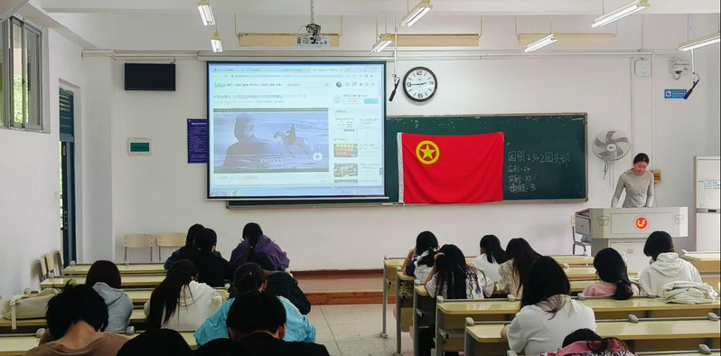 我院团委书记左寅生老师走进国贸2441团支部,以“共绘生态长卷,共建美丽中国”为主线展开宣讲。他结合专业知识,将思想引领、美育熏陶与实践育人相结合,通过解读“绿水青山就是金山银山”的发展理念,展现青年与自然和谐共生的愿景。左老师强调:“生态文明建设不仅是国家战略,更与每位青年的日常生活息息相关,我们应从身边小事践行绿色理念。”