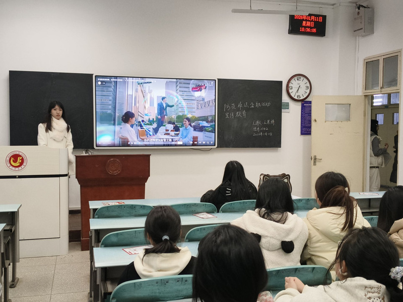 班会紧扣出行安全、防火防灾、防范非法金融活动等重点领域,结合不同年级、不同专业学生特点,实施了精准化、差异化安全教育。针对大一、大二年级学生,各班级采用小组案例讨论、观看警示教育片等方式,让同学们在互动参与中筑牢安全防范意识。如经济2541班通过讨论校园事故案例分析了电动车骑行的违规行为与风险隐患;国贸2441班通过观看消防警示片强化了宿舍防火意识。针对大三、大四年级学生,班会融入了求职安全、实习权益保障及非法金融活动等内容,辅导员重点讲解了金融陷阱及职场安全,包括警惕“校园贷”、“刷单返利”、“入职押金”等重点内容,助力学生安全步入社会。