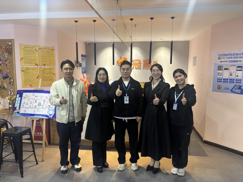 随后,学院一行来到武汉冠寓商业运营管理有限公司,与负责人围绕青年人才培养、实习岗位适配等话题深入交流。负责人介绍,龙湖冠寓作为聚焦城市青年租住场景的知名品牌,拥有完善的服务体系和标准化管理模式,我院实习生在客户服务、社群运营等岗位的表现突出,责任心强、服务细致,能快速适应精细化服务要求。学院也详细了解实习生住宿保障和工作困难,鼓励学生立足岗位、积累经验,为职业发展筑牢基础。